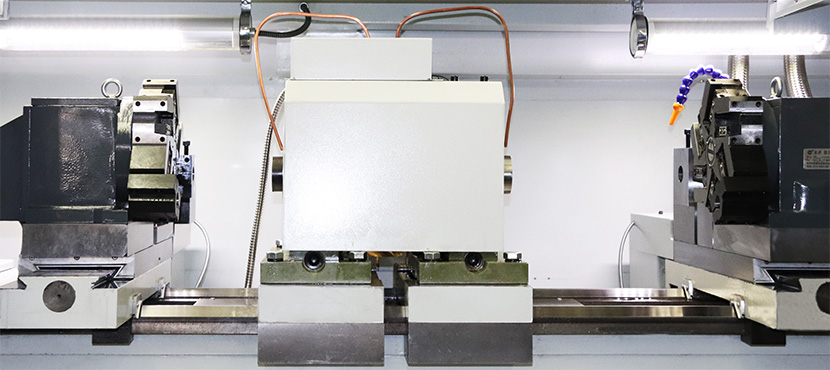 STC100數(shù)控雙頭車床系統(tǒng)配置為雙通道,進(jìn)給軸四軸四聯(lián)動,左右通道同時加工。