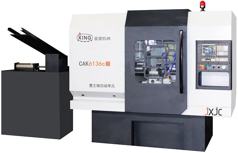 雙主軸兩端自動(dòng)加工數(shù)控車床特別適宜加工各種形狀復(fù)雜的軸類零件,一次裝夾能夠完成車、鉆、攻等工序加工,提高了工序復(fù)合的程度,降低了設(shè)備投入,既保證了零件的加工精度,又減少了工序的周轉(zhuǎn)等輔助時(shí)間,并大幅降低對(duì)操作者技能的要求,減輕工人的勞動(dòng)強(qiáng)度。雙主軸自動(dòng)加工單元尤其適合多品種、中小批量的輪番加工,工藝適應(yīng)性強(qiáng),加工效率高,廢品率低,產(chǎn)品加工一致性好,可降低對(duì)工人技術(shù)熟練程度的要求。